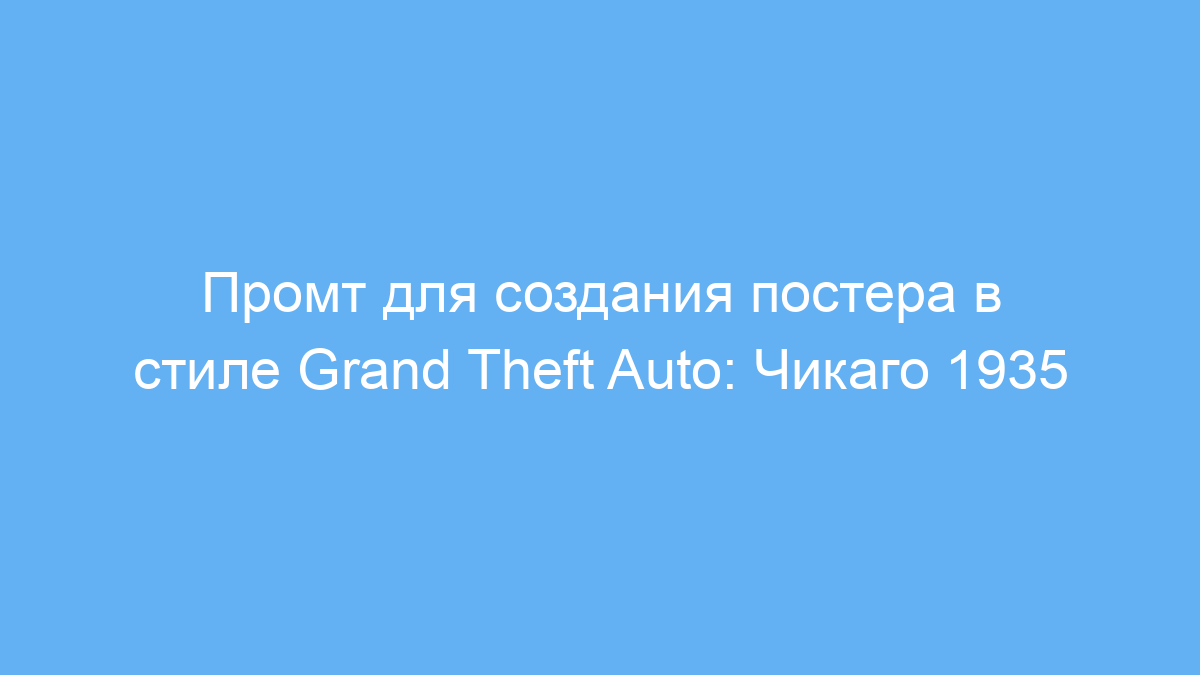 Этот промт позволяет быстро и с минимальными усилиями создавать качественные изображения, заточенные под узнаваемый стиль GTA эпохи 1930-х годов. Он облегчает визуализацию идей и экономит время на поиске дизайна, что полезно для разработчиков креатива, маркетологов и создателей контента.