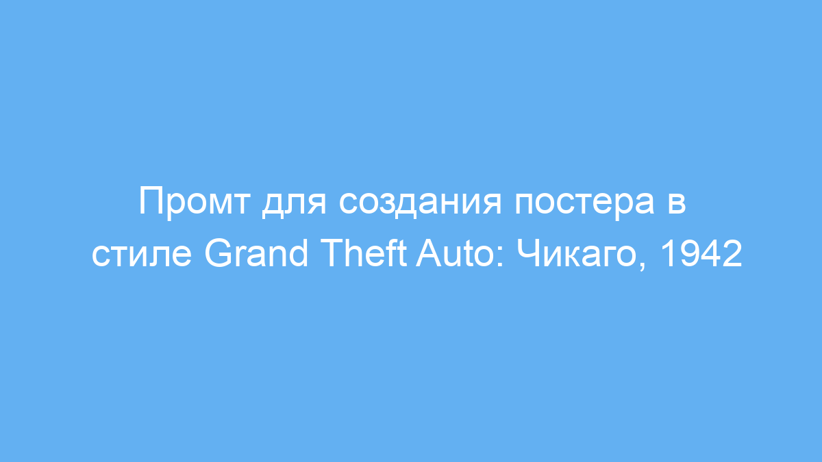 Этот промт позволяет быстро и легко создавать стилизованные изображения в духе Grand Theft Auto с аутентичными деталями эпохи 1940-х годов. Он экономит ваше время и помогает визуально воплотить идеи для игр, маркетинга и творческих проектов без необходимости сложного редактирования.