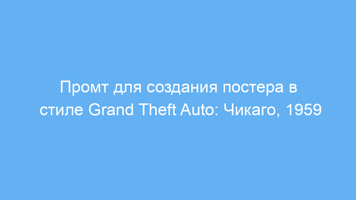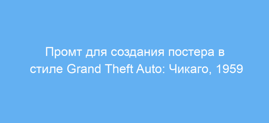 Этот промт предназначен для тех, кто хочет превратить любую фотографию в уникальный дизайн в стиле игрового постера серии Grand Theft Auto, конкретно в атмосфере Чикаго 1959 года. Он особенно полезен дизайнерам, иллюстраторам, маркетологам и авторам контента, которым надо быстро получить качественное изображение в винтажном гангстерском стиле 50-х, с характерной эстетикой GTA и атмосферой послевоенного Чикаго.