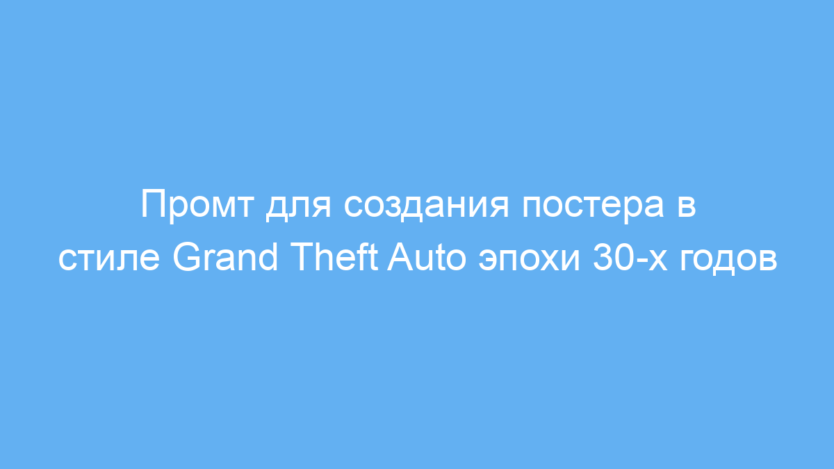 Данный промт экономит время и силы, помогая быстро получить качественное изображение с точной стилизацией под эпоху и игровой стиль Grand Theft Auto. Он идеально подходит для творческих проектов, маркетинга и игр, где важна правильная атмосфера ретро-детектива. Грамотное описание внутри промта делает его удобным и эффективным в работе с нейросетями.