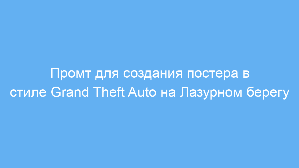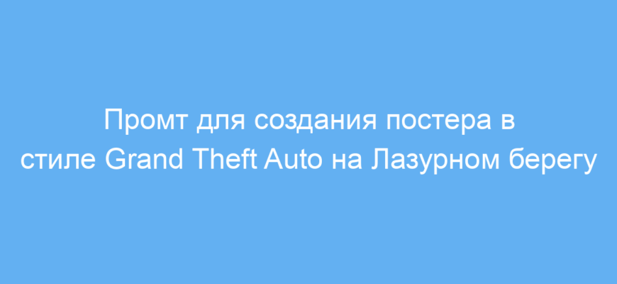 Этот промт позволяет просто и быстро создавать изображения в узнаваемом стиле Grand Theft Auto, но с уникальным ретро-фоном Лазурного берега 1960-х. Он упрощает работу с визуальным контентом, даёт выраженную атмосферу и экономит время на художественную проработку. Используя этот промт, вы получаете качественные, стилизованные постеры без необходимости самостоятельной детализации стиля и локации.