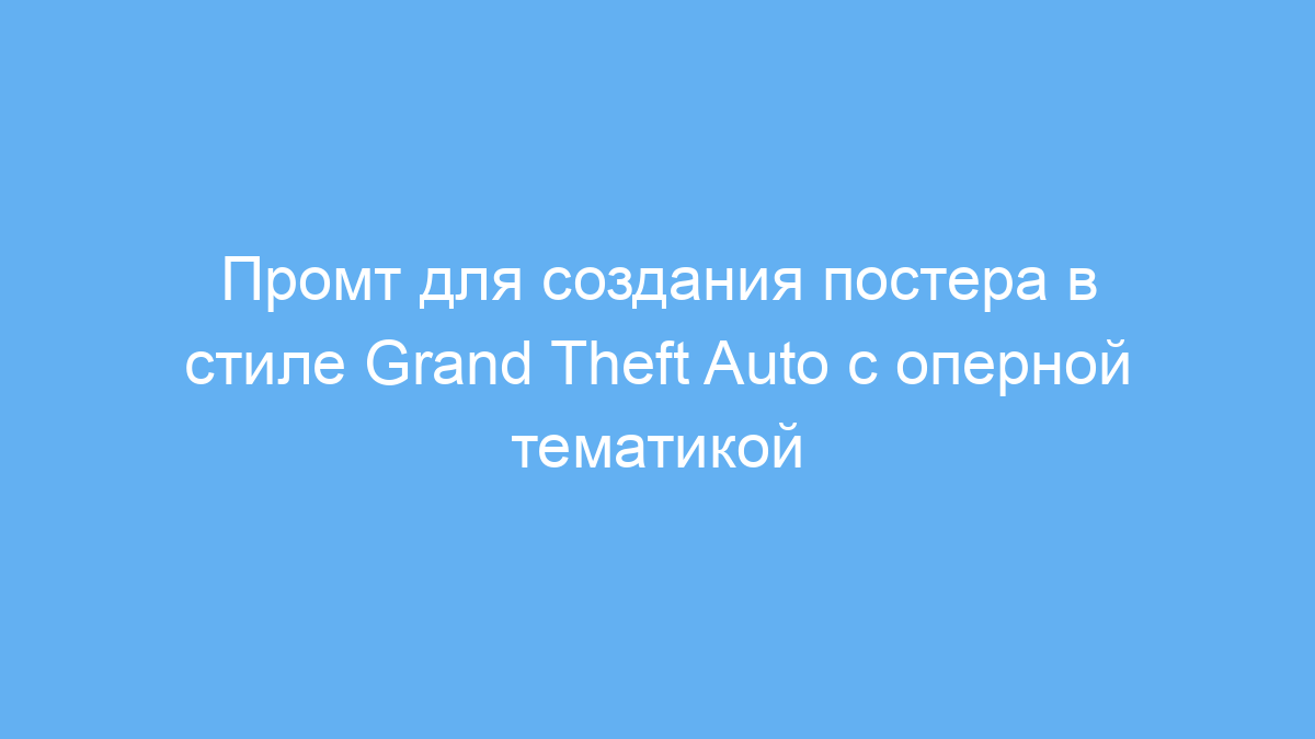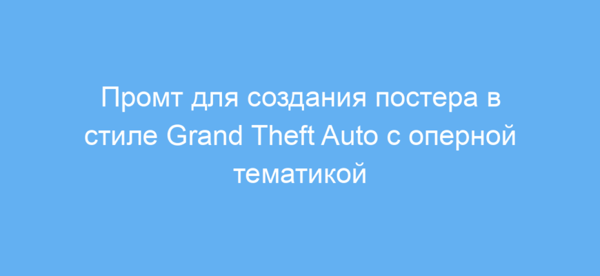 Главное преимущество: быстрое и точное создание атмосферного постера в стиле Grand Theft Auto с оперной тематикой 1930-х годов