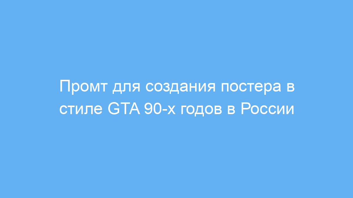 С помощью этого промта вы быстро создадите уникальные и выразительные постеры в стиле Grand Theft Auto с атмосферой 90-х в России. Это экономит время на дизайнерскую работу и позволяет легко получить аутентичный визуальный контент для проектов, связанных с ретро-тематикой и городской культурой того времени.