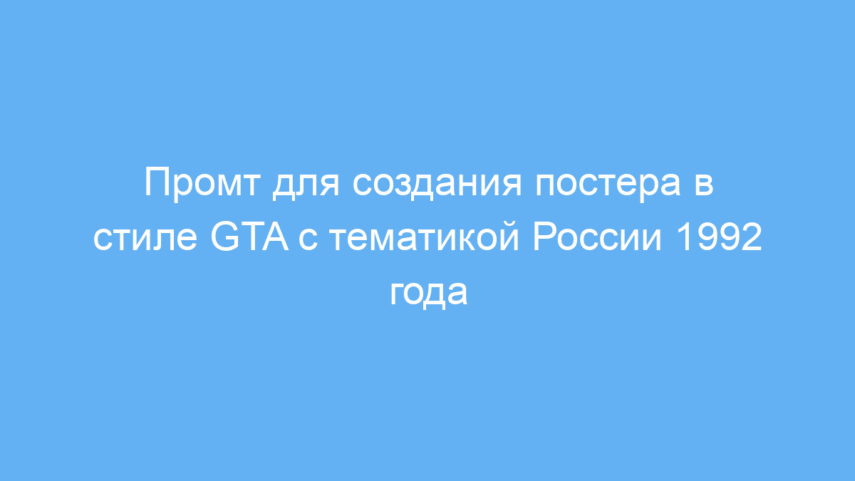 Этот промт полезен дизайнеру, художнику или любителю цифрового искусства, кто хочет превратить обычное фото в уникальный игровой постер в стиле Grand Theft Auto. Он помогает быстро создать арт с атмосферой России начала 1990-х годов, используя узнаваемый художественный стиль GTA.