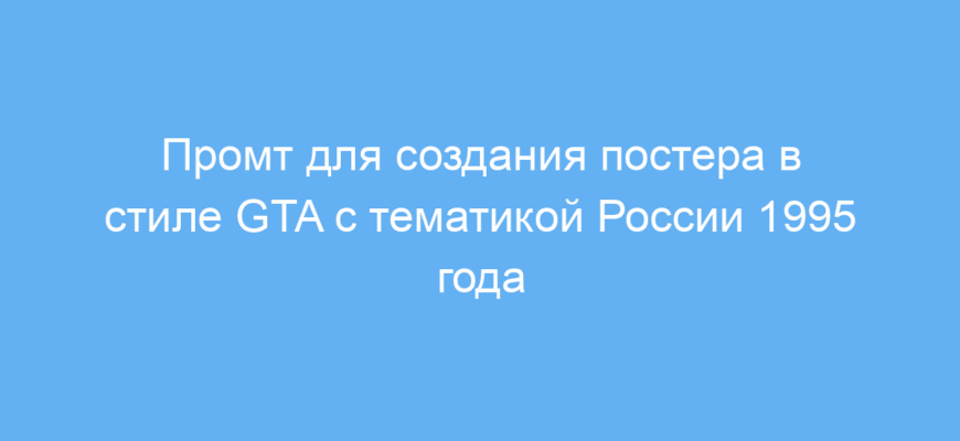 Этот промт экономит время и силы, позволяя быстро создавать визуальные образы в уникальном стиле GTA с исторической атмосферой России 1995 года. Он помогает выделиться среди прочих дизайнов, формирует глубокое настроение и подходит для проектов, связанных с ретро, играми или историческими темами.