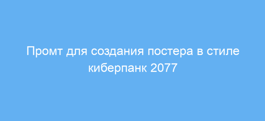 Этот промт экономит время дизайнеров и маркетологов при создании ярких киберпанк-постеров с нужной атмосферой. Он помогает легко и быстро получить стилизованное изображение с актуальной визуальной эстетикой, что особенно полезно для промо-материалов, афиш и событий в тематике киберпанка.
