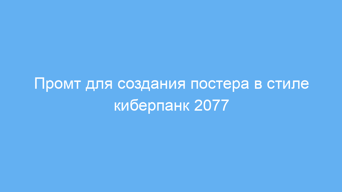 Этот промт предназначен для дизайнеров, маркетологов и организаторов мероприятий, которые хотят быстро создать яркий постер в стиле «Киберпанк 2077». Он поможет сгенерировать визуал, сочетающий неоновые элементы, цифровой шум и VHS-эффекты, чтобы придать изображению атмосферу ретро-киберпанка.