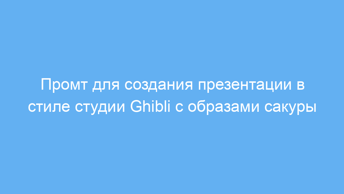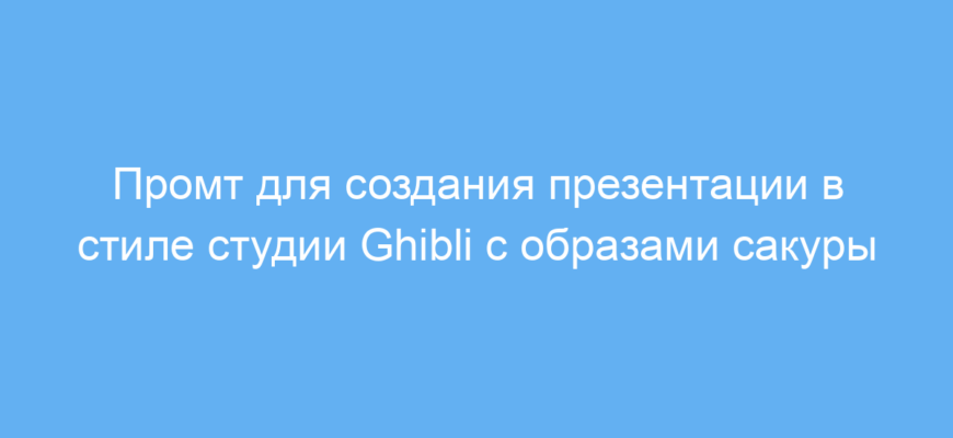 Этот промт предназначен для дизайнеров, маркетологов, преподавателей и всех, кто хочет быстро получить художественные и живые изображения в стиле студии Ghibli. Используя ключевые визуальные образы — цветущую сакуру, мягкий ветер и пастельные оттенки — промт помогает создавать презентации, которые выглядят атмосферно и эмоционально. Это облегчает работу с визуальным содержанием, экономит время на поиске идей и настройках, а также помогает сделать материал более привлекательным для аудитории.