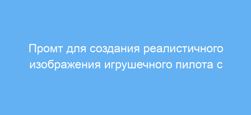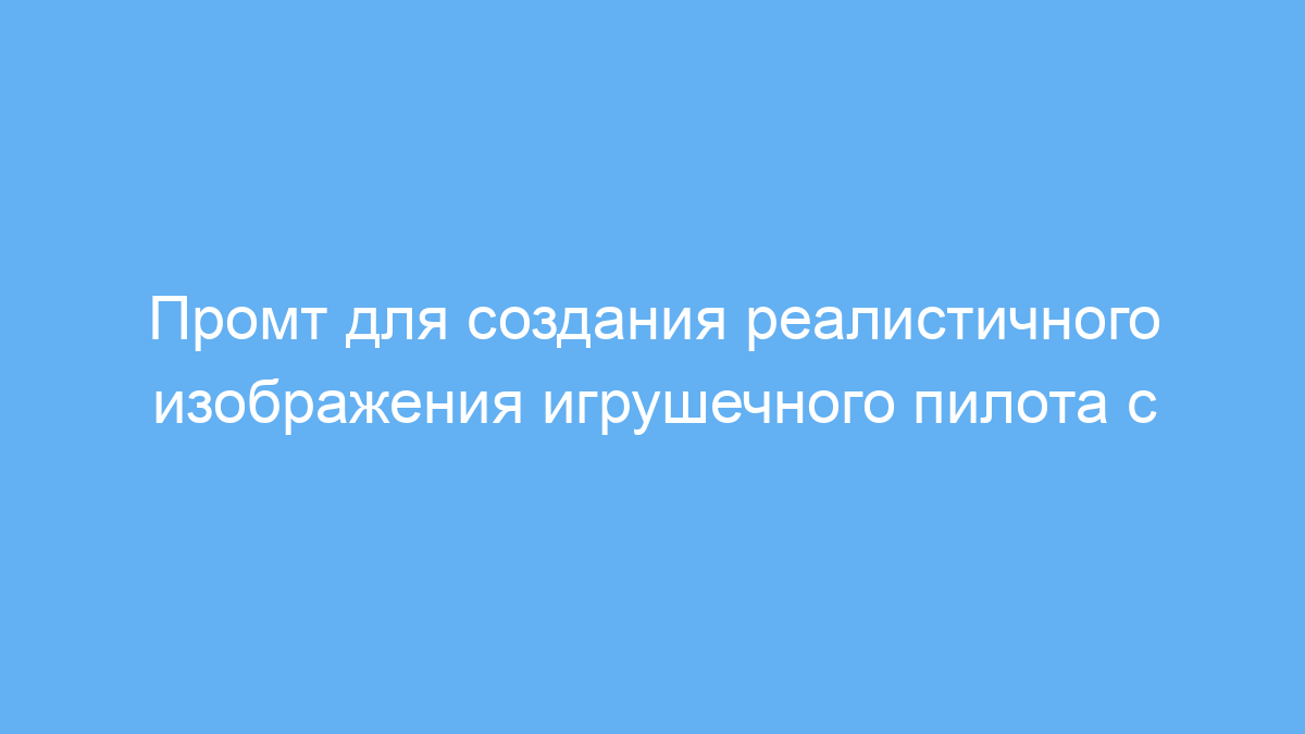 Проблема, которую решает этот промт, — необходимость получить четкое, стилистически выдержанное изображение с конкретными элементами: игрушкой в форме пилота, самолетом, тематической надписью и соответствующим фоном. Используя указания по цветам и стилю, промт гарантирует, что результат будет выглядеть единообразно и реалистично.