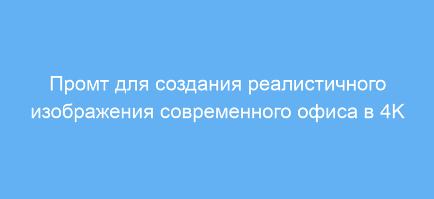 Этот промт предназначен для тех, кто хочет получить качественное и детализированное изображение современного офисного пространства. Он будет полезен дизайнерам интерьеров, маркетологам, специалистам по визуализации и владельцам бизнеса, которым нужно показать концепцию комфортного и стильного рабочего места.
