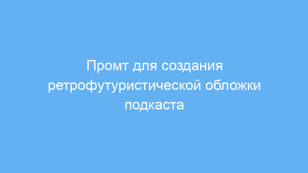Этот промт предназначен для тех, кто хочет быстро и качественно создать обложку подкаста в ретрофутуристическом стиле. Он помогает дизайнерам, подкастером и маркетологам визуализировать и получить уникальный образ подкаста с атмосферой 70-х годов. Промт решает задачу снижения времени на разработку концепта и поисков подходящих элементов дизайна, используя нейросети для автоматической генерации.