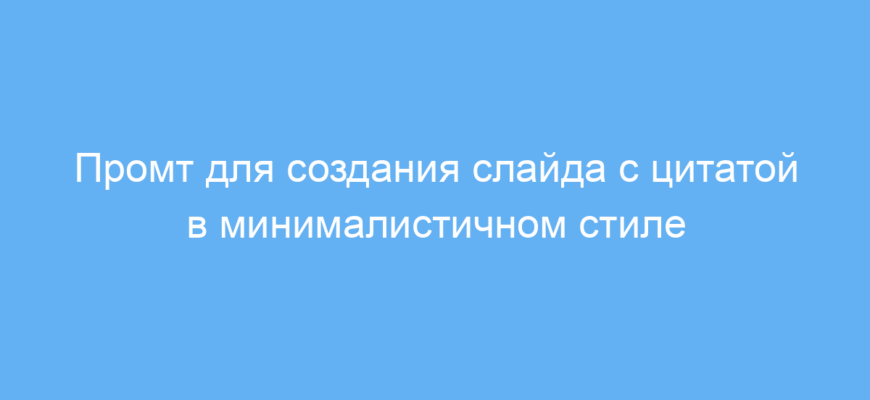 Использование данного промта значительно упрощает и ускоряет процесс создания лаконичных и эффективных слайдов с цитатами. Он позволяет сосредоточить внимание аудитории на важном высказывании благодаря минималистичному оформлению и крупному шрифту, что особенно полезно в презентациях, обучении и социальных сетях.