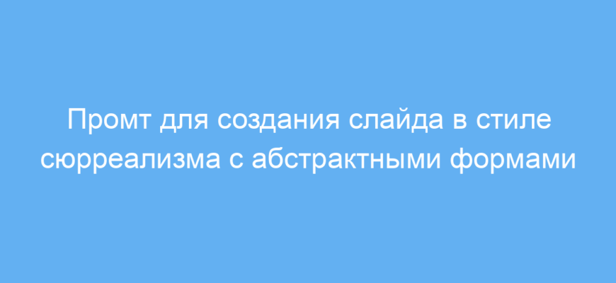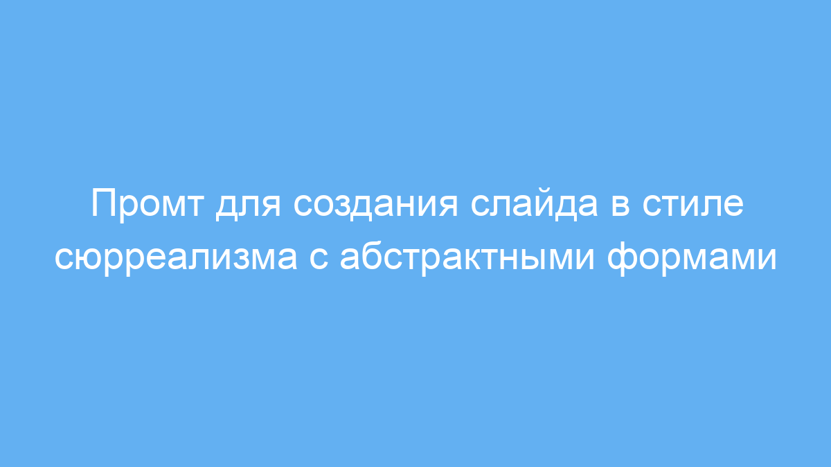 Создай слайд для презентации с иллюстрацией текста [текст] в стиле сюрреализма с абстрактными формами, используя синий и желтый цвета. |
