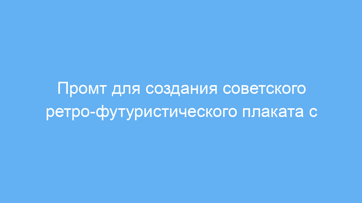 Используя этот промт, вы быстро получаете эффектный советский ретро-футуристический плакат с минимальными усилиями. Это удобный инструмент для создания тематической графики без необходимости долгой работы над дизайном вручную. Подходит для творческих проектов, маркетинга и обучения, помогая экономить время и обеспечивать качественный художественный результат.