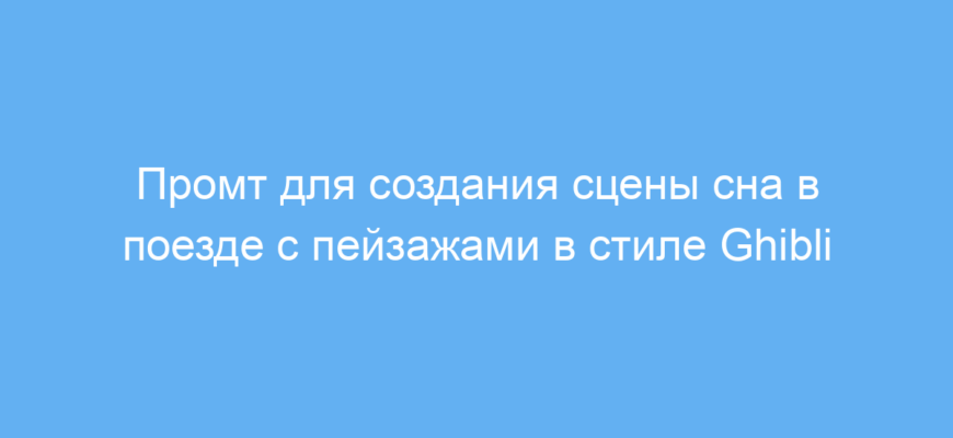 Используя этот промт, вы быстро получите выразительное описание или изображение сцены сна в поезде с атмосферой в стиле Ghibli. Это экономит время на детальное прописывание каждой детали, помогает сосредоточиться на творчестве и сделать визуализацию более эмоциональной и стилистически цельной.