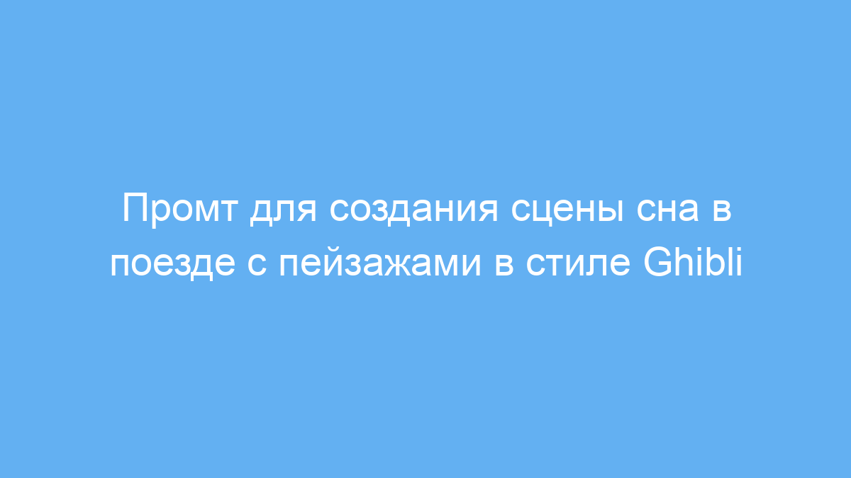Работает промт просто: пользователь вводит его в нейросеть (текстовую или визуальную), и модель создаёт текстовое описание или изображение согласно заданным параметрам — поезд, сон, пейзажи в стиле Ghibli с конкретным светом и эффектами размытия.