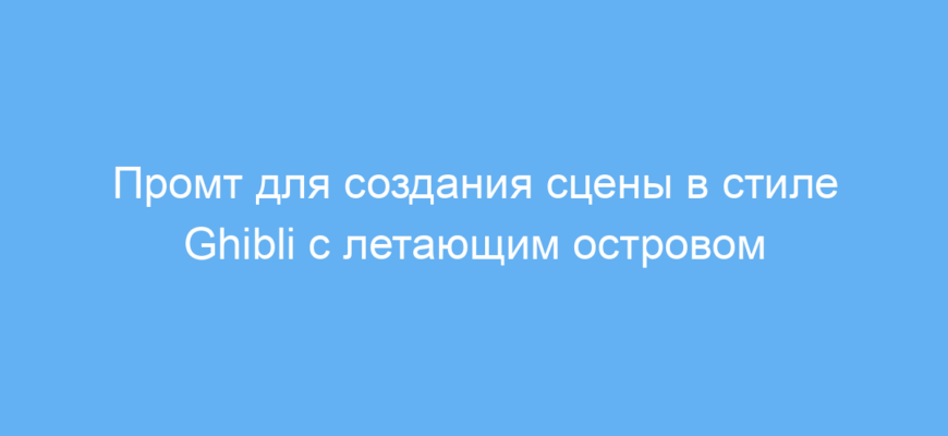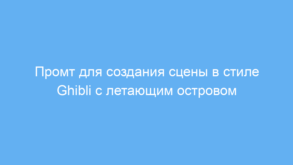 Промт работает как инструкция для нейронных сетей в области генерации изображений или текстов. Он задаёт ключевые элементы: стиль Ghibli, летающий остров, водопады, яркие цвета и фантастическую атмосферу, чтобы получить желаемый результат за один запрос.