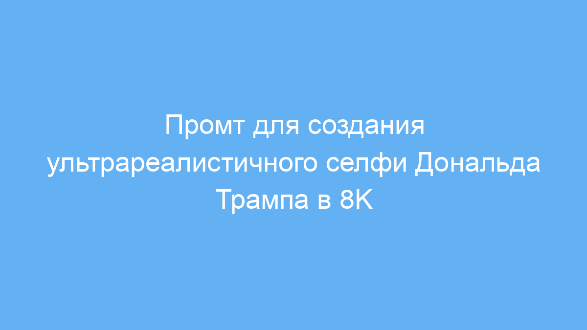 Этот промт идеально подходит для пользователей нейросетей, которые хотят получить высококачественное изображение с конкретным сценарием: Дональд Трамп делает селфи с выбранной статуей человека. Он помогает быстро и просто создавать реалистичные фото с уникальным сюжетом, что полезно для маркетинга, развлечений и креативных проектов.