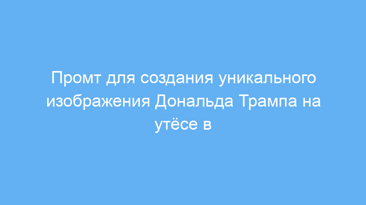 Нейросеть создаст яркое и драматичное изображение, на котором Дональд Трамп позирует, держа телефон для селфи. Он стоит на отвесном утёсе, украшенном бетонной статуей из кусочков морского стекла с фактурой мозаики. На кованой табличке чётко виден заданный текст. Вокруг композиции — бурные океанские волны, морские чайки и скалы, что создаёт эффект настоящего ирландского побережья. Поздний вечер, насыщенные холодные синие оттенки и HDR-эффект подчёркивают глубину и реалистичность сцены, как будто фото сделано на мобильный телефон в реальных условиях.