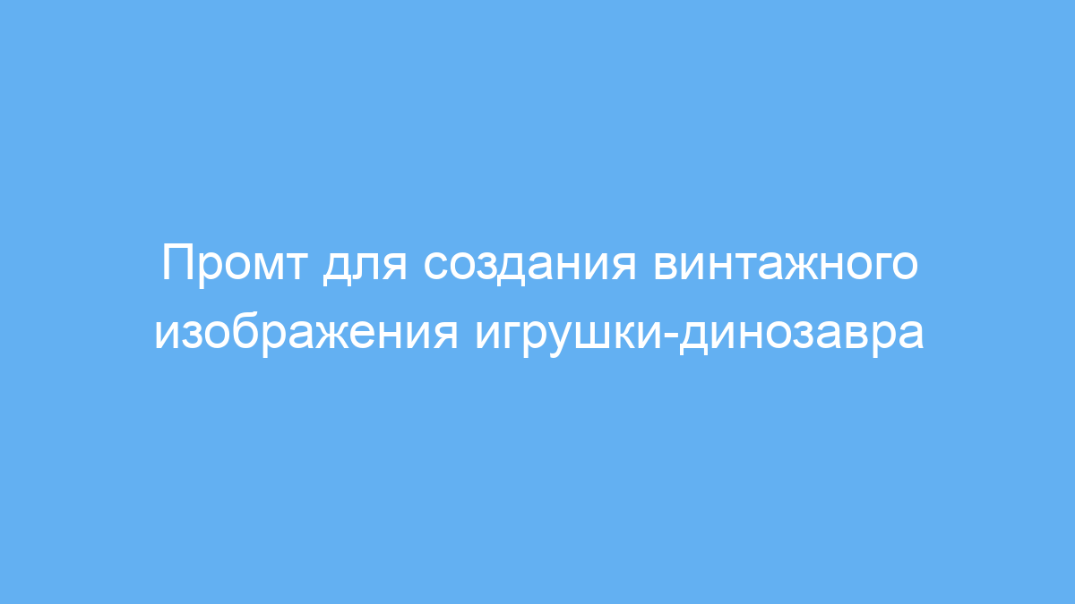Этот промт создан для художников, дизайнеров и контент-креаторов, которые хотят получить уникальное изображение игрушки-динозавра в стиле винтажной фигурки из 80-х годов. Он помогает быстро генерировать визуализацию с точным описанием деталей и атмосферы, что сэкономит время на подготовку и вдохновение. Также промт полезен для любителей ретро-стиля и коллекционеров, желающих создавать или представлять свои коллекции.