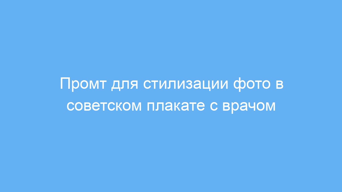 Этот промт помогает быстро и легко создать впечатляющую визуализацию в стиле советского плаката с четко выделенным врачом и важными деталями. Он позволяет экономить время на дизайне и вносит яркий стиль, который идеально подойдет для медицинских кампаний, презентаций и социальных проектов.