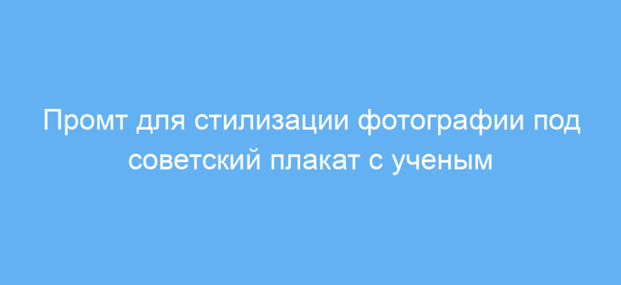Промт позволяет быстро и просто получить уникальное изображение в стиле советского плаката с минимальными усилиями. Это удобно для тех, кто создает визуальный контент с тематикой науки, истории или ретро-футуризма. Он сокращает время на настройку и выбор параметров, одновременно помогая добиться четкого и выразительного результата.