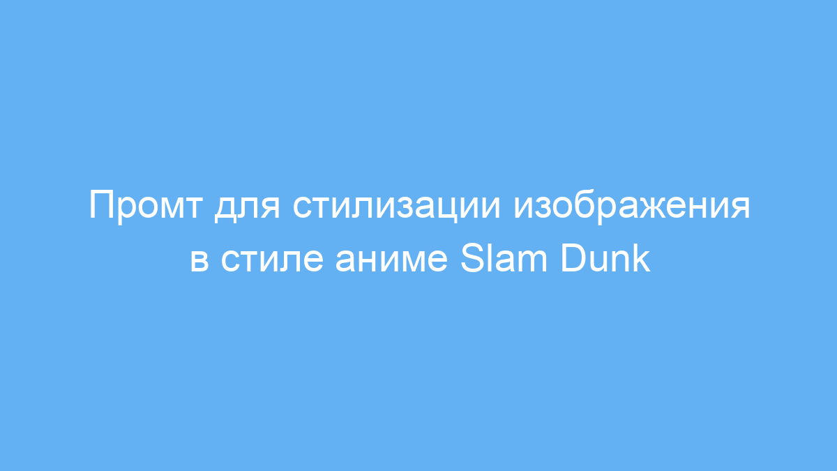 Промт работает с нейросетью, которая преобразует загруженное вами фото в стиль, имитирующий анимационные сцены из «Slam Dunk». Особое внимание уделяется динамичной композиции — например, прыжку или броску, что усиливает ощущение действия на изображении.