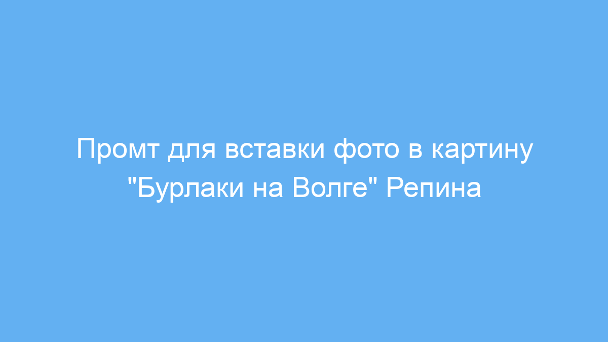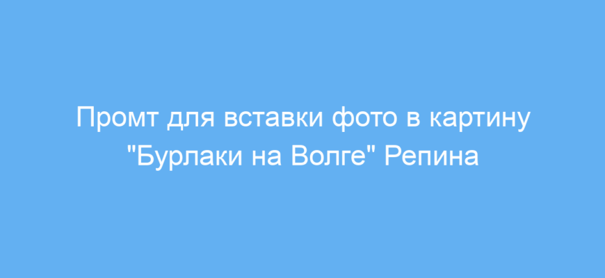 Этот промт предназначен для тех, кто хочет встроить своё фото в знаменитую картину «Бурлаки на Волге» Репина. Он помогает создать уникальное изображение, сохраняя при этом характерный реалистичный речной пейзаж и напряжённую композицию произведения. Такой приём полезен дизайнерам, художникам, блогерам и всем, кто хочет необычно оформить личное фото или создать интересный арт-проект.