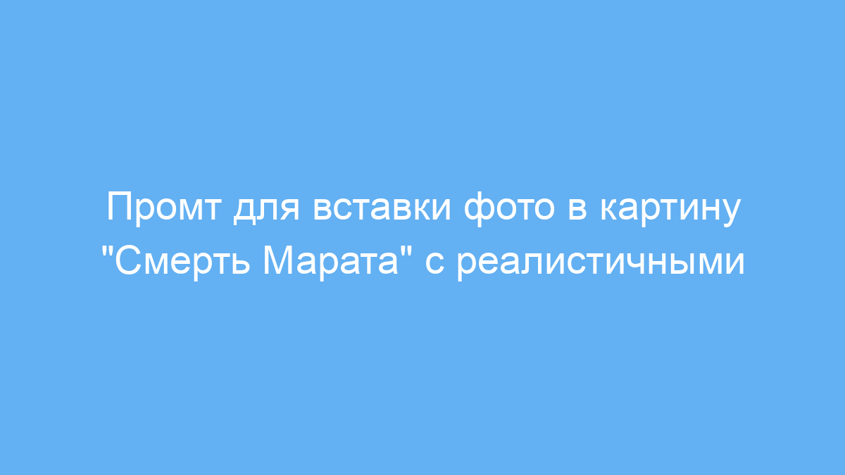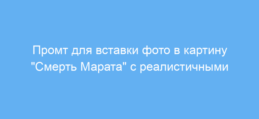 Этот промт предназначен для пользователей нейросетей, которые хотят преобразовать своё фото, поместив его в известное художественное произведение — картину Жака-Луи Давида «Смерть Марата». Он автоматически интегрирует ваше изображение в картину, сохраняя стиль, добавляя реалистичные детали и передавая атмосферу революции, характерную для оригинала.