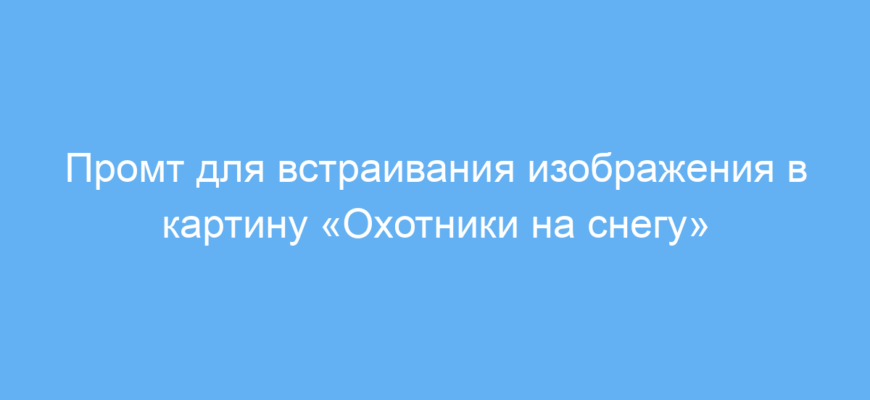 Этот промт предназначен для художников, дизайнеров и любителей цифрового искусства, которые хотят создать уникальную работу, интегрируя собственное изображение в классическую картину «Охотники на снегу» Питера Брейгеля старшего.