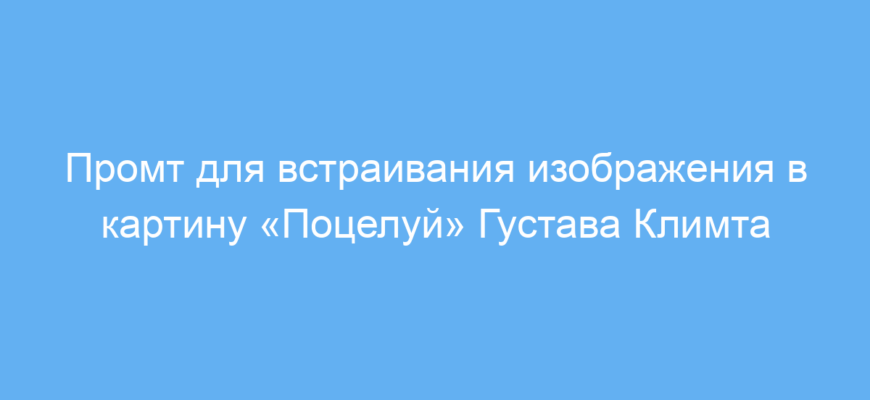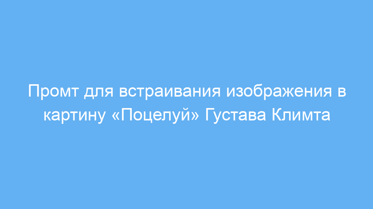 Этот промт предназначен для художников, дизайнеров и пользователей нейросетей, которые хотят объединить собственное изображение с известной картиной «Поцелуй» Густава Климта. Использование золотых узоров в стиле ар-нуво и византийского орнамента помогает создать эффект художественной интеграции, сохраняя атмосферу и стиль оригинального произведения. Основная задача промта — автоматически встроить новое изображение в знаменитую композицию, при этом подчёркивая роскошные декоративные элементы и уникальный стиль Климта.