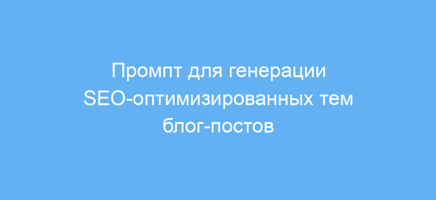В этом случае промпт поможет сформировать темы, актуальные для профессионалов, повысит видимость сайта в поисковиках и привлечёт перспективных клиентов.