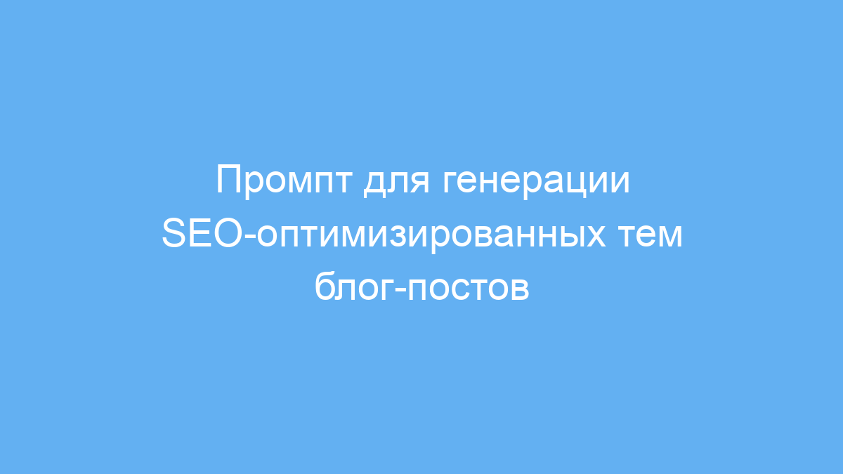 Промпт решает проблемы отсутствия вдохновения и трудности в подборе эффективных тем, которые будут одновременно привлекательными для читателей и оптимизированными по SEO. Он автоматически выдает конкретные темы с достаточным материалом для развернутой статьи, что упрощает подготовку контент-плана.