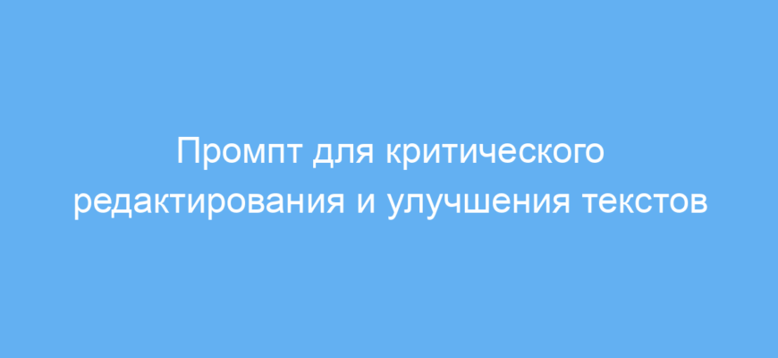 Использование данного промпта позволяет экономить время и силы на самостоятельный поиск ошибок и улучшений в тексте. Он помогает системно подходить к редактированию, учитывая множество аспектов качества текста — от орфографии до эмоционального воздействия. Результатом становится более профессиональный и эффективный материал, который лучше воспринимается аудиторией.