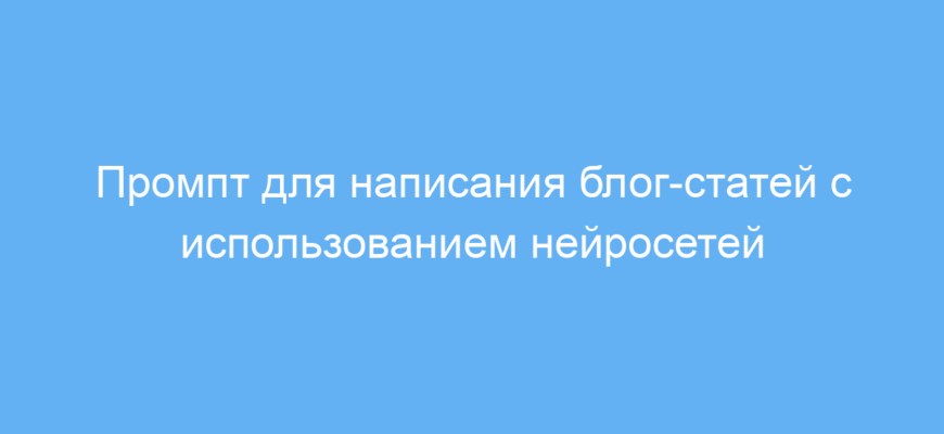Этот промпт создан для тех, кто хочет быстро и качественно писать блог-статьи с помощью нейросети. Его могут использовать блогеры, контент-маркетологи, студенты и все, кто занят в создании текстового контента. Часто возникает задача подготовить содержательную и хорошо структурированную статью, но времени или опыта недостаточно для написания большого объема самостоятельно. Промпт решает эту проблему, направляя нейросеть на создание текста с четкой структурой, читаемостью и вовлеченностью.