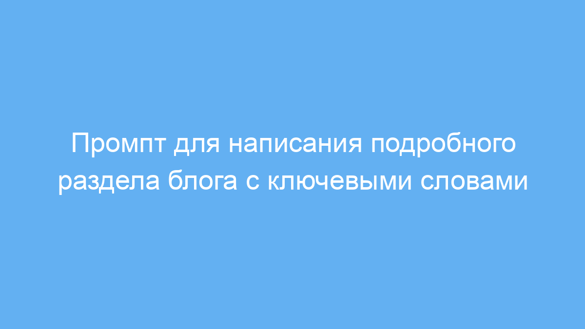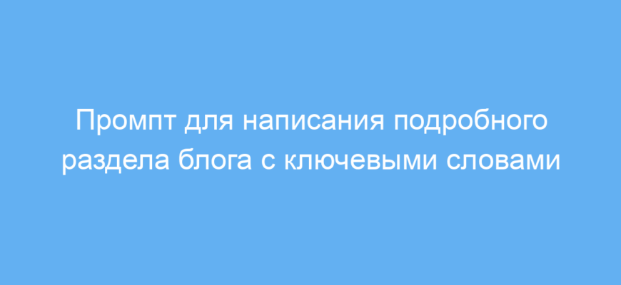 Использование этого промпта позволяет быстро и качественно создавать структурированный, SEO-оптимизированный и интересный раздел блога. Это экономит время и силы, снижает риск пропуска важных деталей и помогает сделать текст более профессиональным и полезным для читателей.