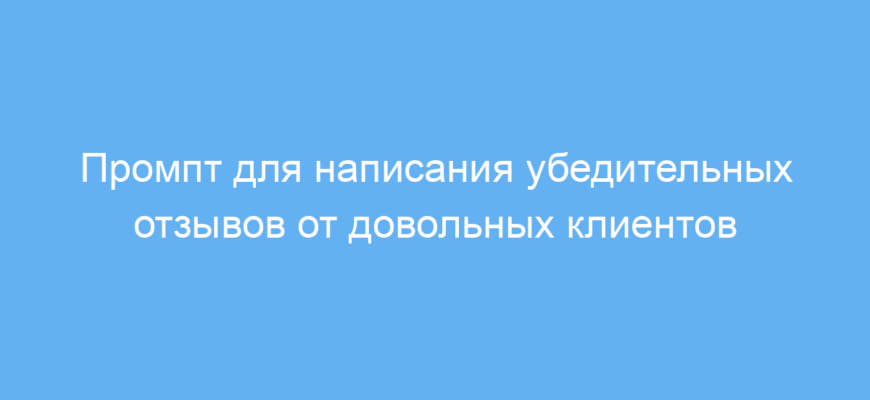 Работа промпта проста: вы вставляете название вашего продукта или услуги в специальное место, после чего нейросеть пишет текст от имени довольного клиента. В результате вы получаете живой, правдоподобный и убедительный отзыв, который можно сразу использовать или немного отредактировать по своему усмотрению.
