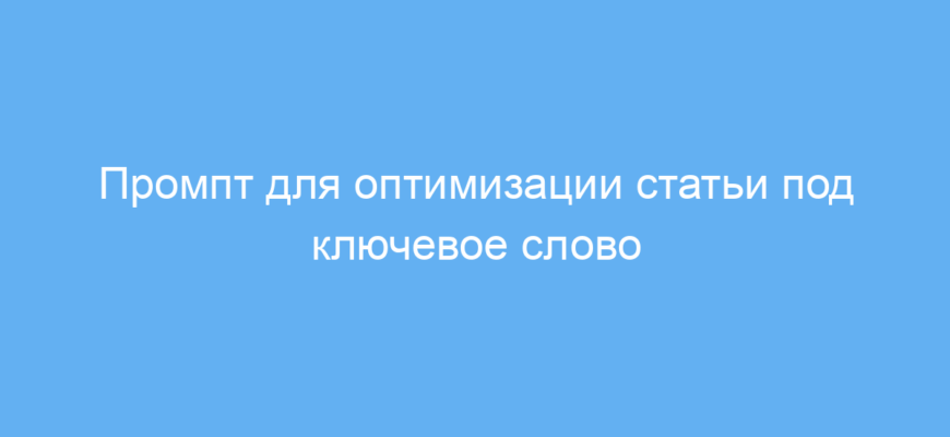 Промпт работает следующим образом: вы вводите тему статьи и целевое ключевое слово, после чего нейросеть предлагает конкретные рекомендации по доработке контента. Это ускоряет процесс SEO-анализа и позволяет сразу получить результат, применимый к тексту.