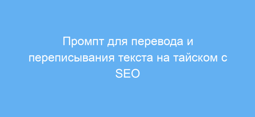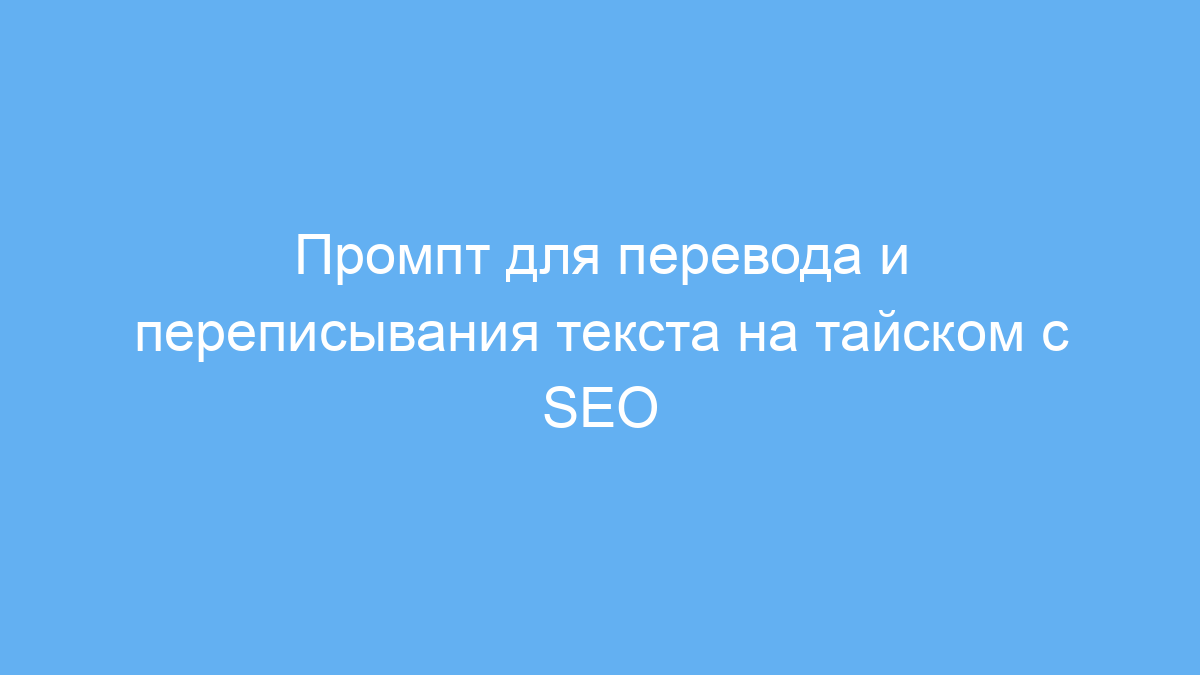 Этот промпт экономит время и силы, позволяя быстро получить качественные, естественные и SEO-оптимизированные тексты на тайском языке. Он помогает повысить привлекательность сайта и улучшить позиции в поисковых системах без необходимости глубоких знаний языка.