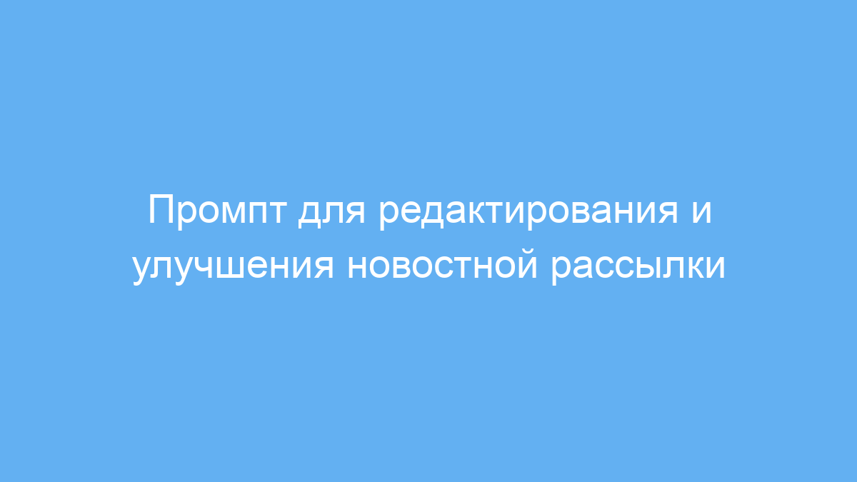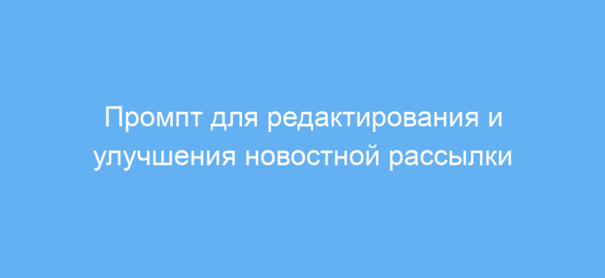 Этот промпт предназначен для всех, кто занимается созданием и публикацией новостных рассылок. Особенно это полезно для копирайтеров, маркетологов, редакторов и владельцев бизнеса, которые хотят повысить качество своих писем и сделать их более привлекательными для аудитории.