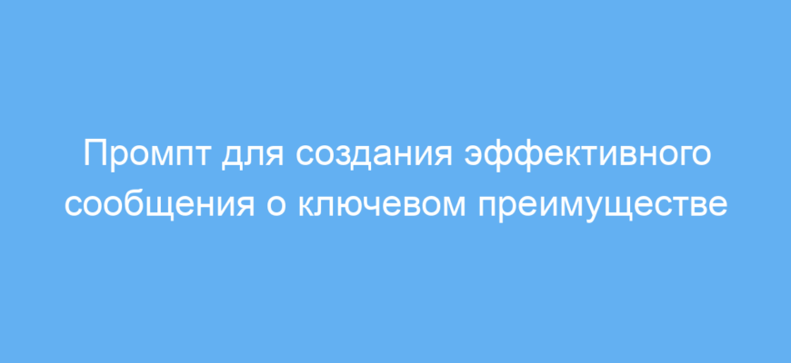 Использование данного промпта экономит время и силы при создании убедительного маркетингового сообщения, четко выделяющего главное преимущество вашего продукта или услуги. Это повышает эффективность коммуникации с целевой аудиторией и помогает быстрее добиться нужного отклика.