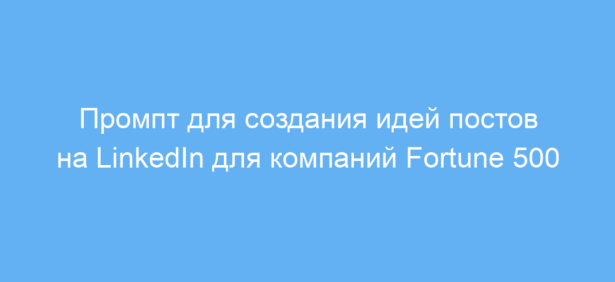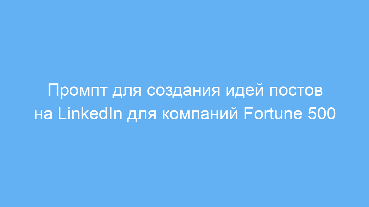 Данный промпт предназначен для копирайтеров и маркетологов, которые работают с крупными корпорациями из списка Fortune 500 и хотят быстро получить оригинальные идеи для постов на LinkedIn. Он помогает решать задачу привлечения трафика и вовлечения профессиональной аудитории, используя проверенные маркетинговые техники.