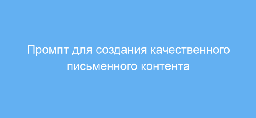 Данный промпт значительно облегчает создание качественного и структурированного текста, экономит время на сбор информации и оформление материала. Он подходит как для профессионалов, так и для новичков, которые хотят получать понятный и грамотный контент, соответствующий требованиям аудитории и без риска плагиата.