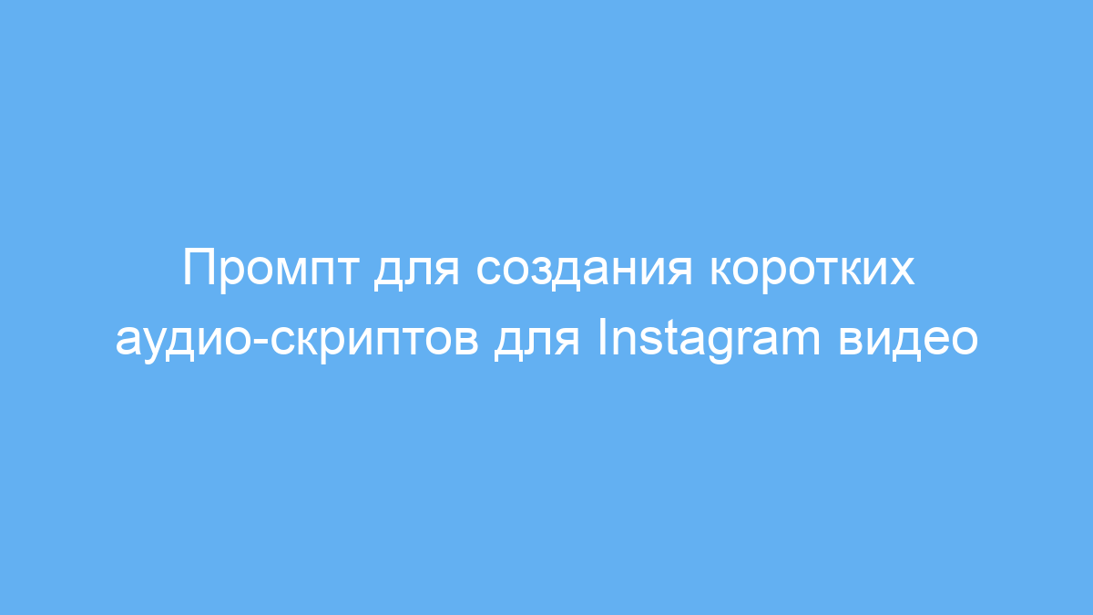 Этот промпт значительно упрощает процесс создания коротких аудио-скриптов для Instagram видео, помогая писать убедительный и структурированный текст с эмоциональным посылом. Он экономит время, делает контент более целенаправленным и одновременно захватывающим для зрителя.