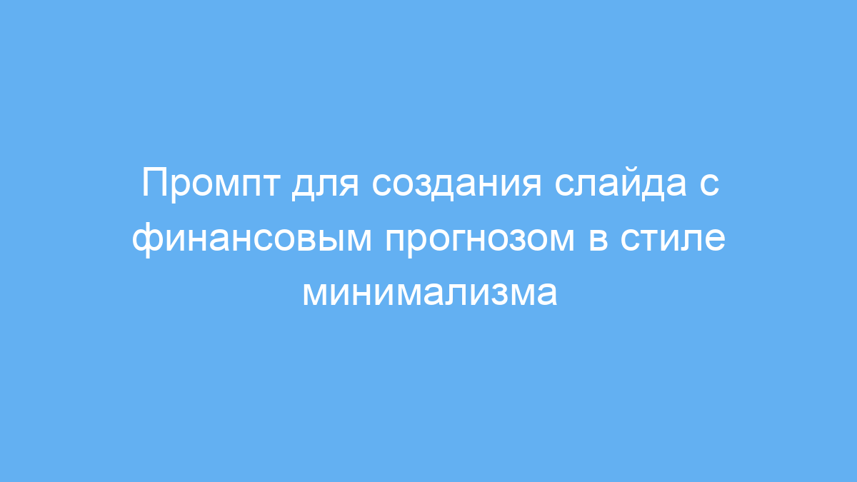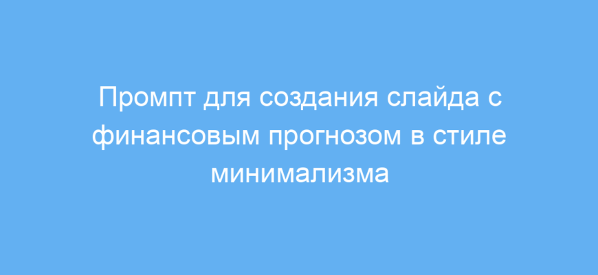 Используя данный промпт, вы экономите время на подготовке деловых презентаций с финансовыми прогнозами. Он помогает быстро получить лаконичный и понятный слайд, который сразу можно использовать или доработать. Минималистичный стиль гарантирует фокус на основных данных без лишнего визуального шума.