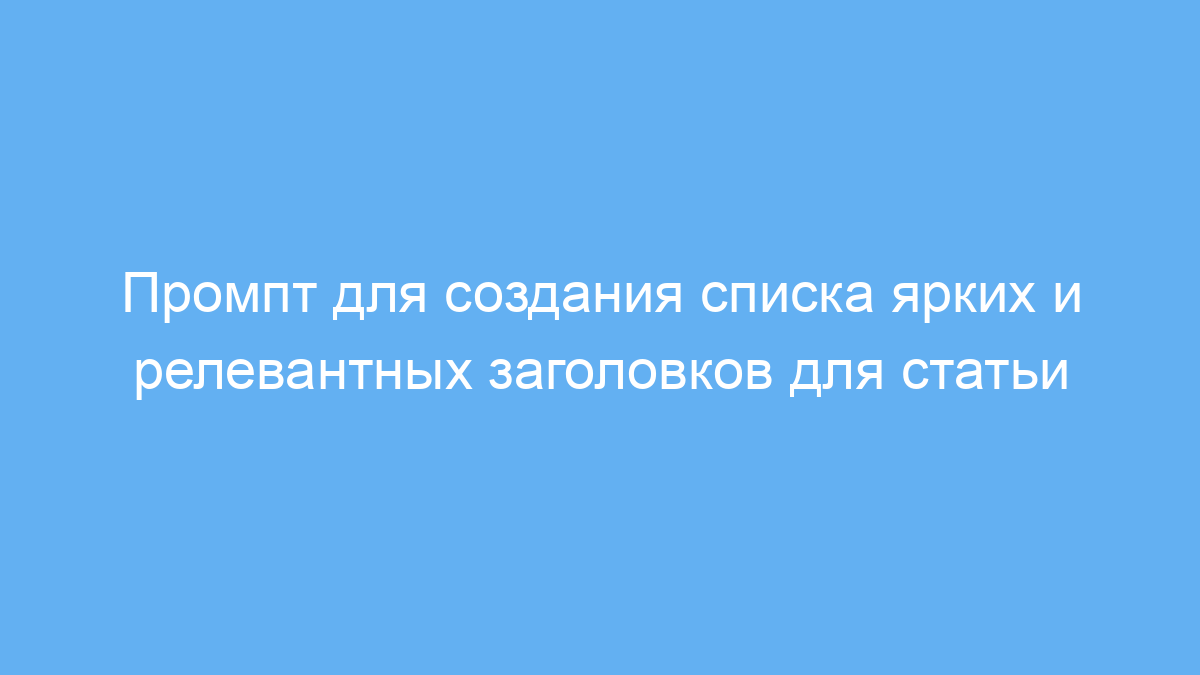 Этот промпт экономит время и облегчает процесс создания привлекательных заголовков. Он помогает избежать творческого кризиса и быстро получить свежие, актуальные варианты, которые можно использовать как есть или адаптировать под нужды текста и аудитории.