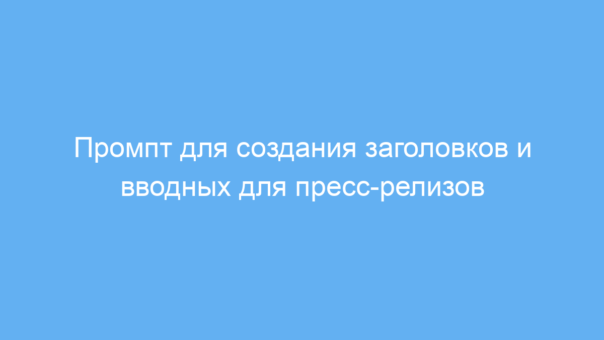 Проблема, которую решает промпт, — это сложность и долгий процесс создания первых строк пресс-релиза, которые должны заинтересовать читателя. С помощью промпта вы получите сразу несколько вариантов, из которых сможете выбрать лучший или вдохновиться для доработки.