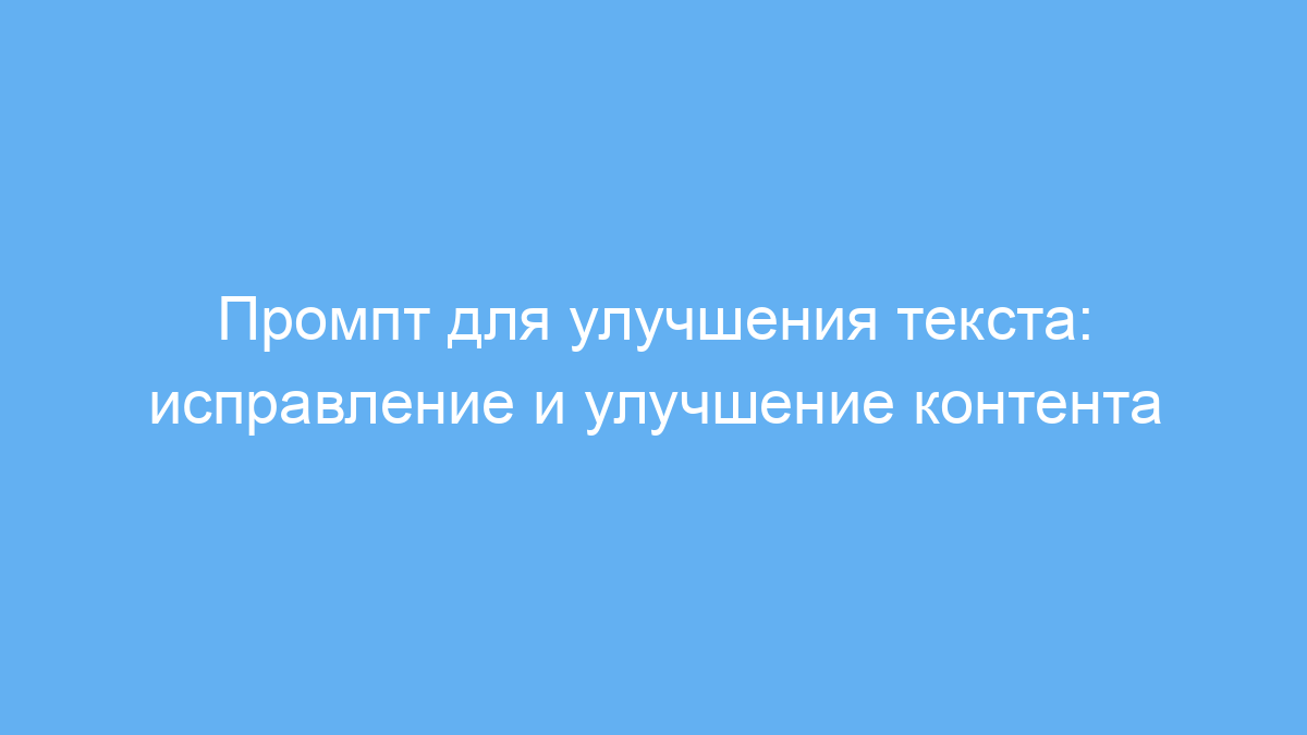 Промпт помогает исправить грамматические ошибки, улучшить структуру и стиль текста, сделать его связным и понятным. Благодаря использованию этого промпта вы сможете быстро получить от нейросети улучшенную версию вашего текста, учитывающую ваши требования и пожелания.