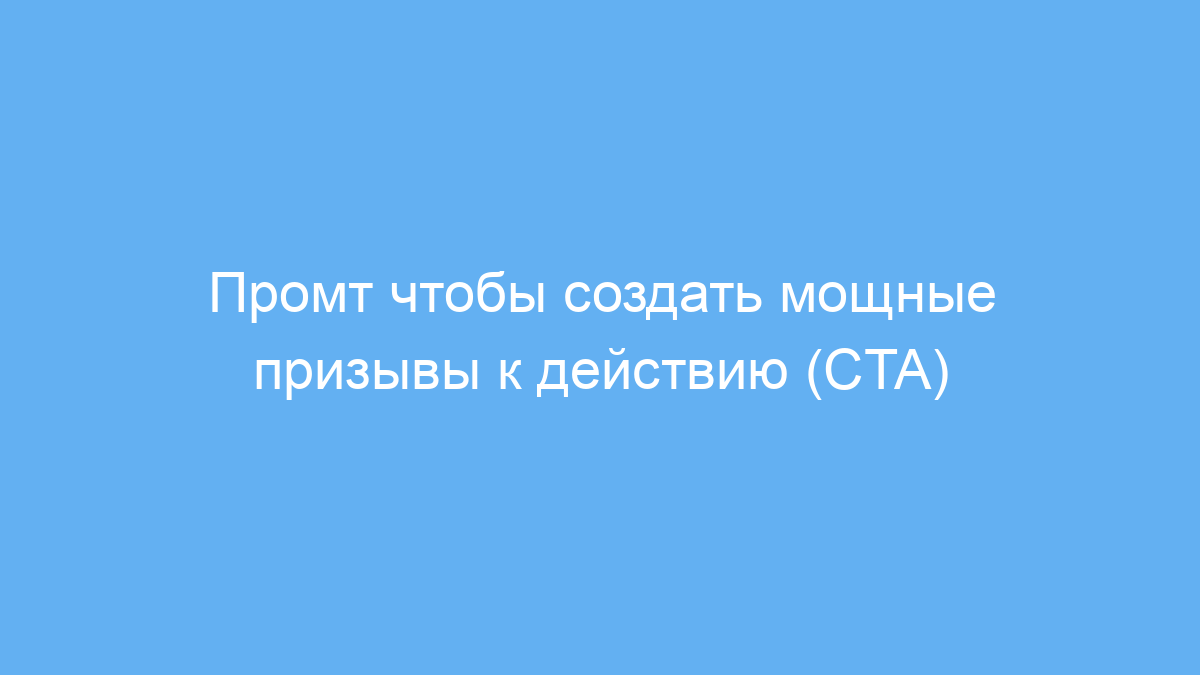 Проблема в том, что придумать цепляющие и мотивирующие CTA сложно, а от качества призыва часто зависит успех маркетинговой кампании. Этот промт помогает решить эту задачу, автоматически генерируя три сильных варианта призывов под любое действие.