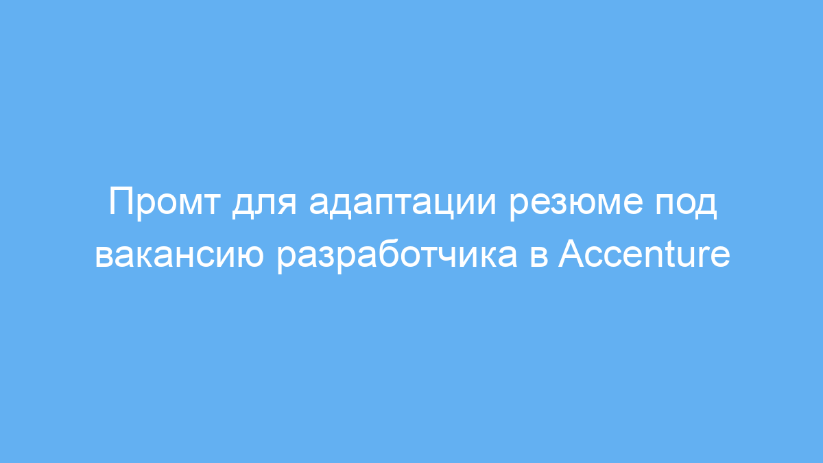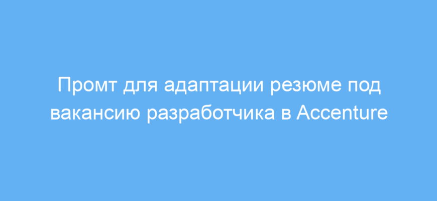 Использование этого промта значительно упрощает и ускоряет подготовку резюме, адаптированного под конкретные требования работодателя. Это помогает выделиться среди других кандидатов и повысить ваши шансы на успешное трудоустройство в Accenture.